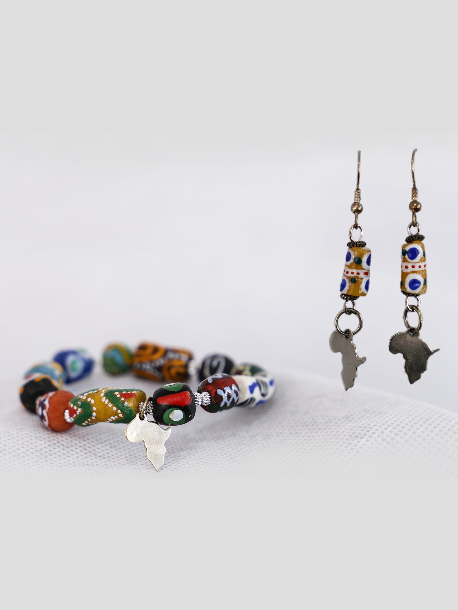 Make a bold, meaningful statement with our bracelet and matching earrings set, made from vibrant African trade beads – each piece telling a story of heritage, craftsmanship, and empowerment.