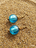 Elevate your jewelry collection with these striking African Diamond Earrings by OneWay Kenya. Handcrafted with meticulous attention to detail, these earrings feature vibrant, translucent sea-blue beads with a shimmering silver-leaf interior, designed to catch the light from every angle.