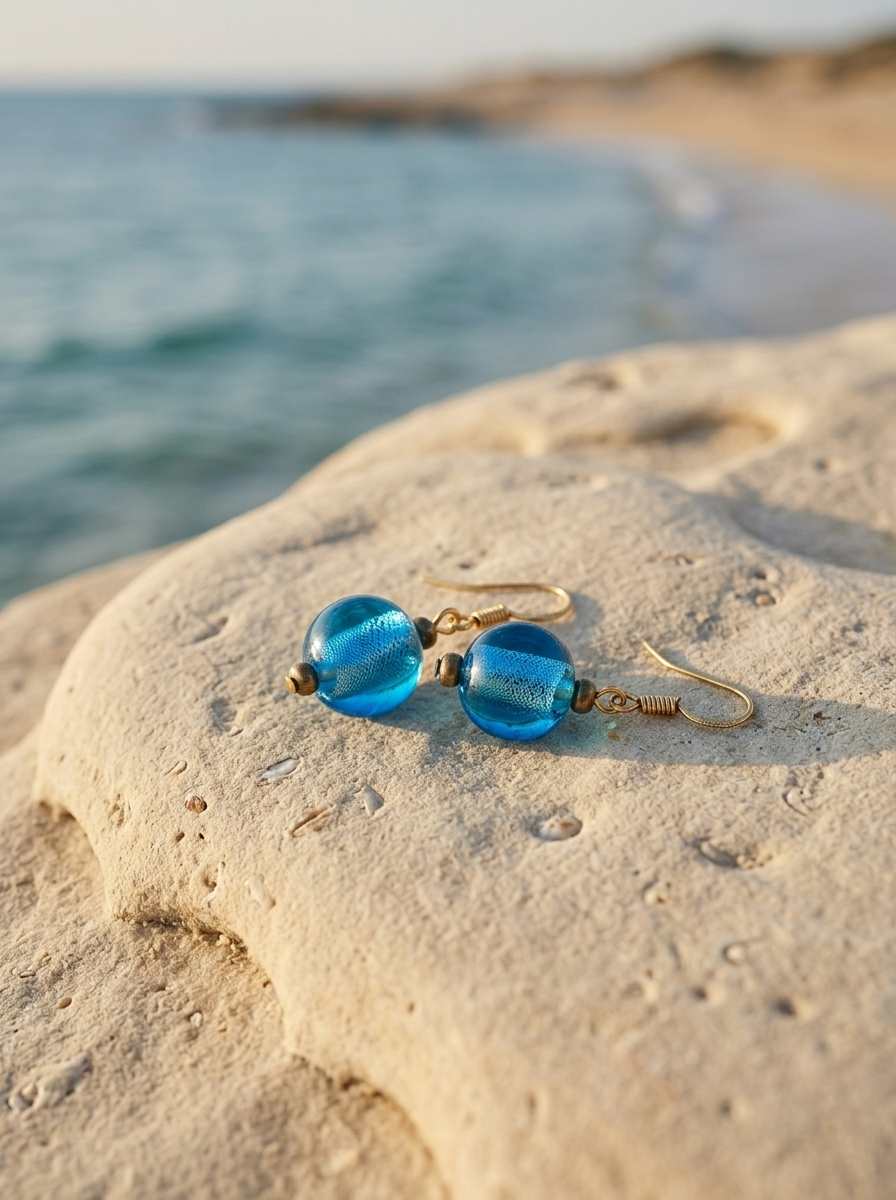 Vibrant Aesthetic: High-shine blue glass beads with textured internal foiling.