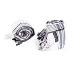• Finished with traditional fringed edges
