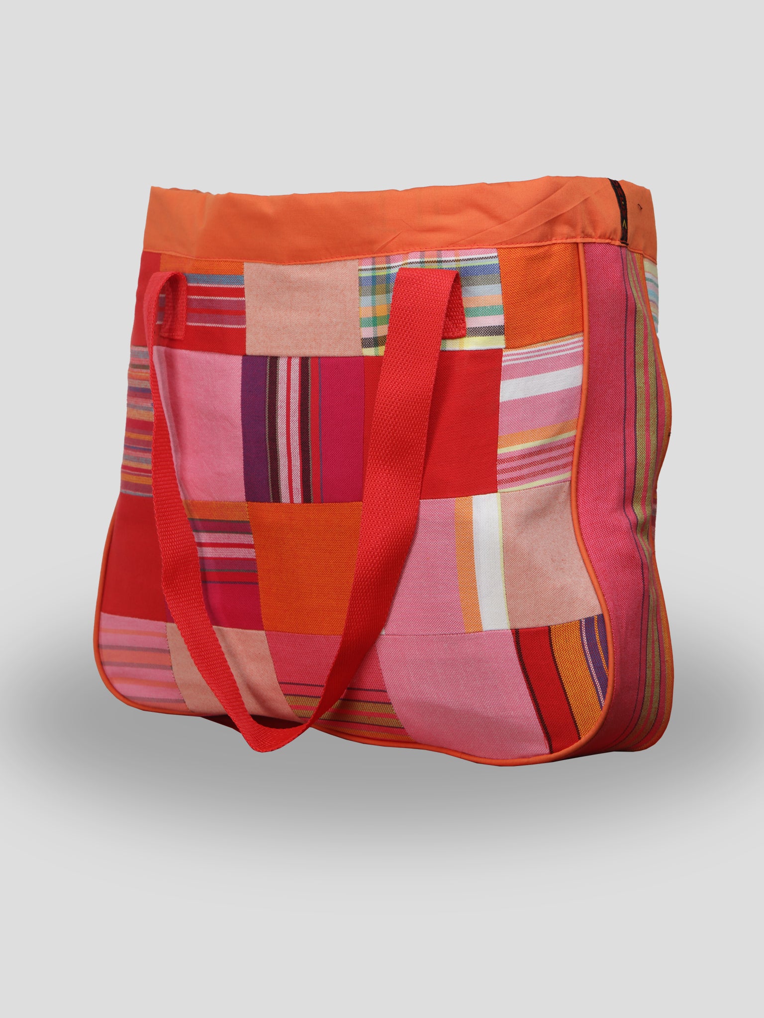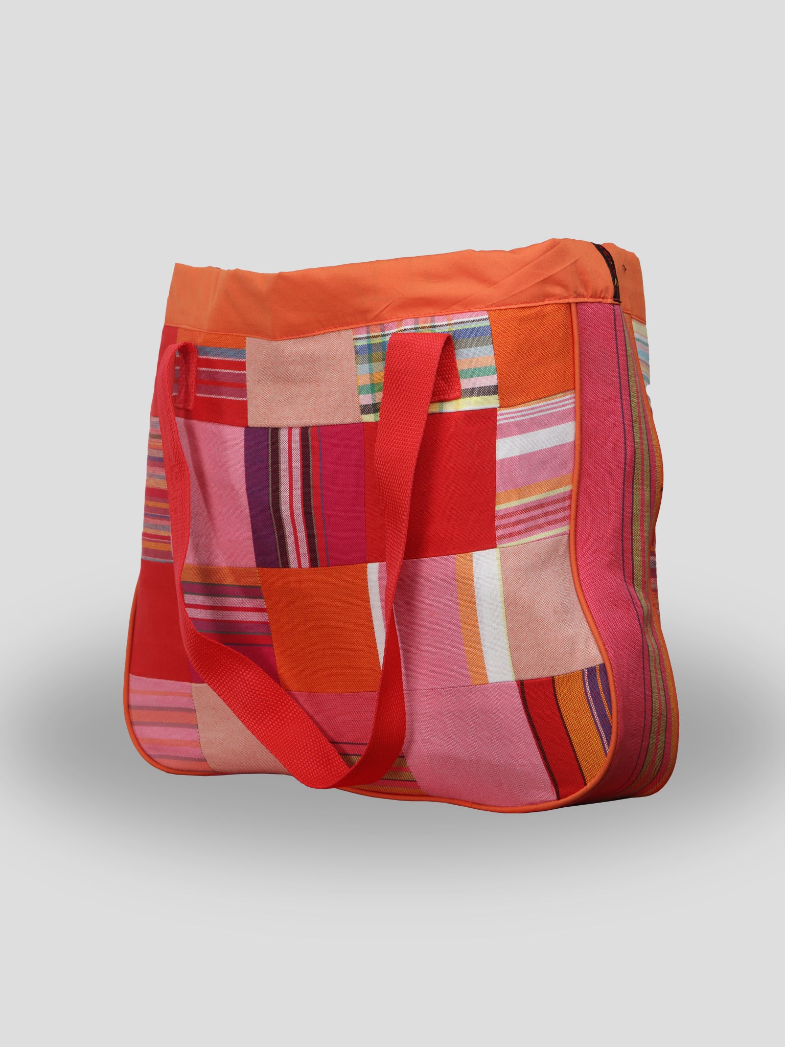 Introducing the Kikoy Patchwork Bag in Black, made from 100% regionally sourced Premium Cotton. The outer fabric features a unique patchwork design with Kikoy material, while the inner lining is water proof and includes 2 pockets for added organization. This bag is also WFTO certified, ensuring fair trade practices. Dimensions are L: 38 x W: 8 x H: 32 cm. Limited stock available.