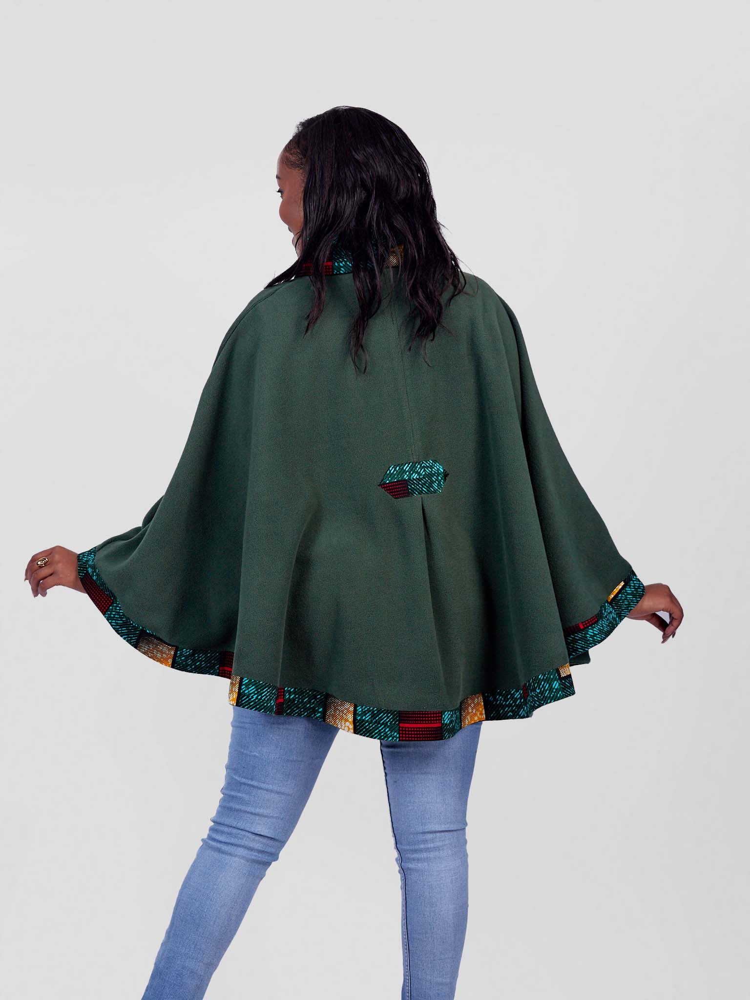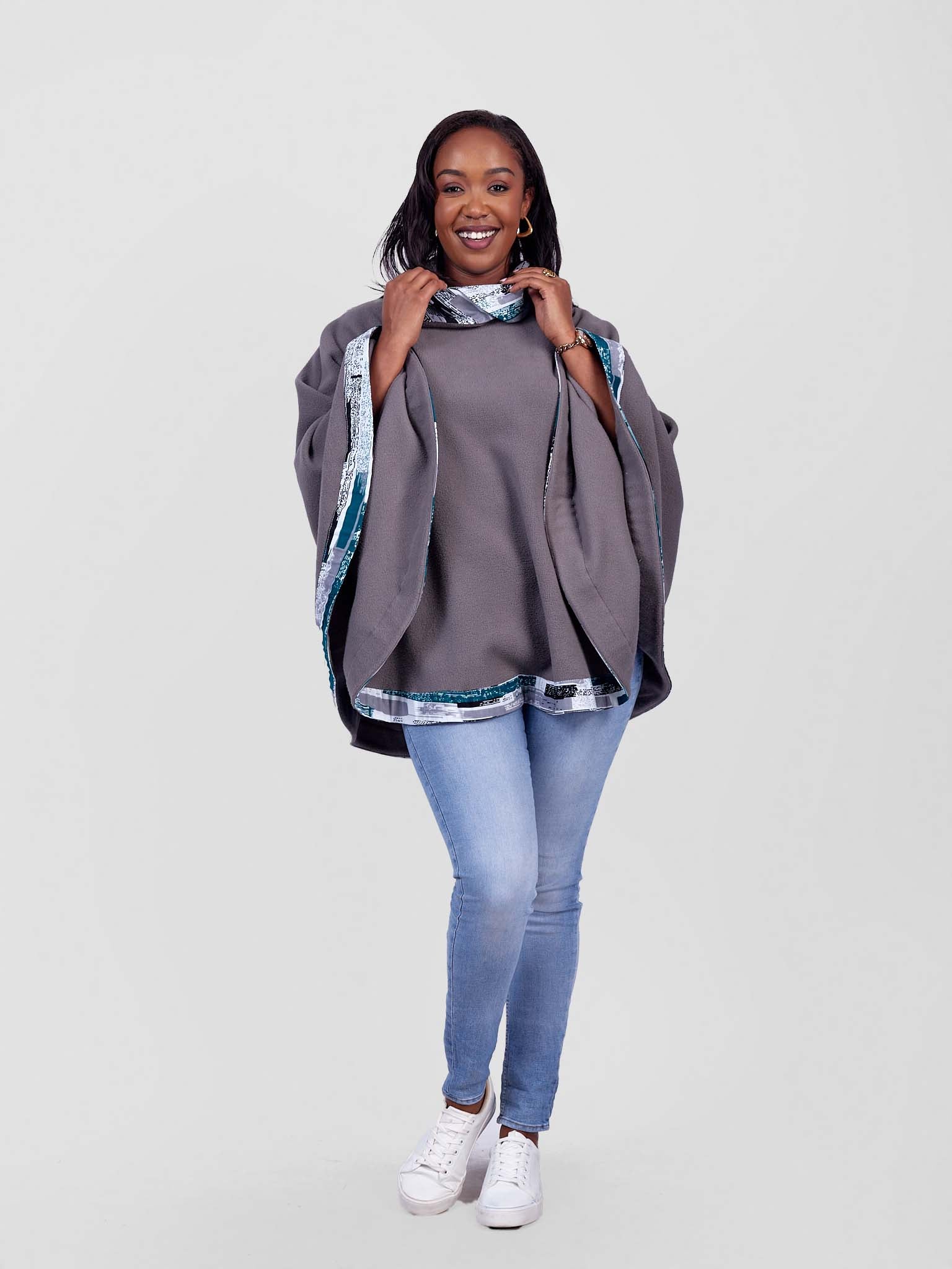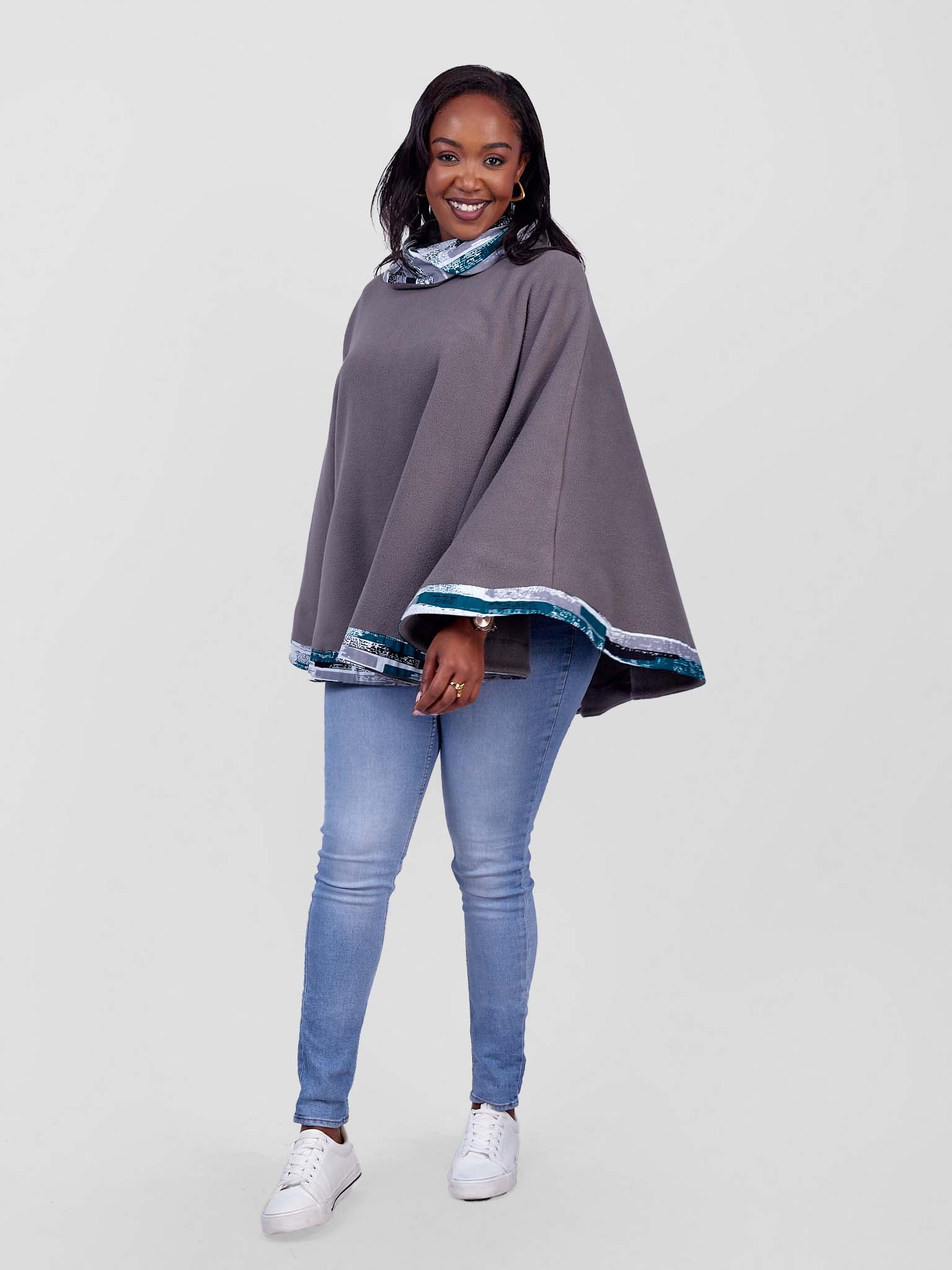 Stay stylish and warm with our beautifully crafted ponchos, made from soft fleece material and accented with a touch of vibrant African Kitenge fabric. Designed for comfort and elegance, these cozy ponchos are perfect for any occasion.