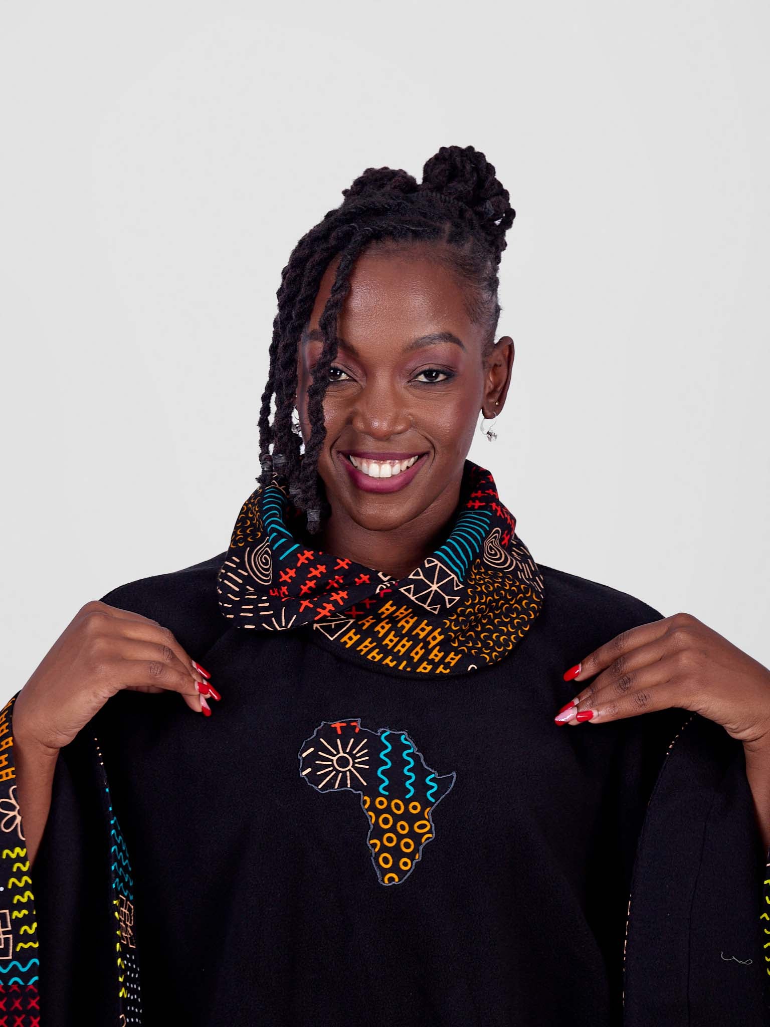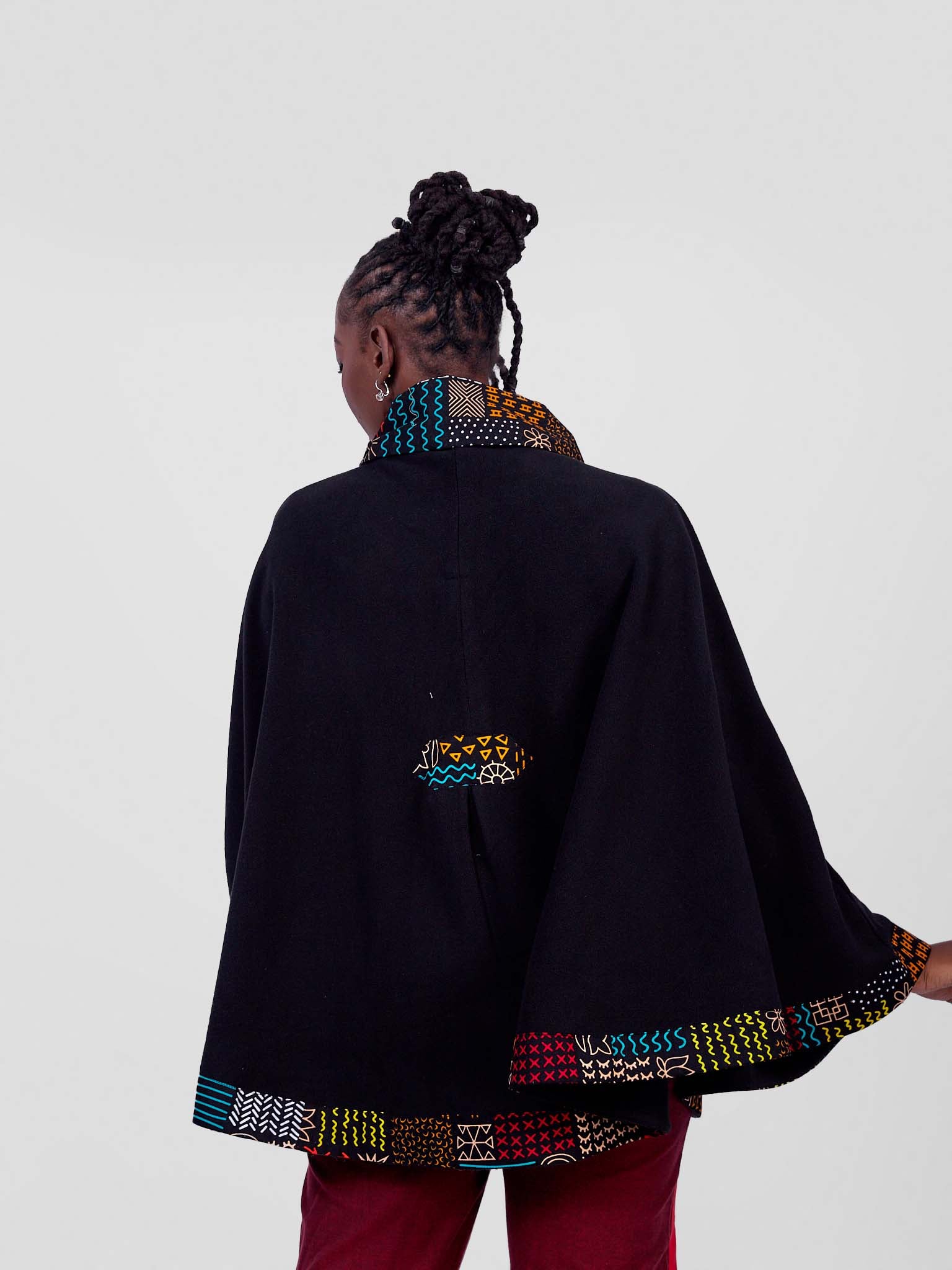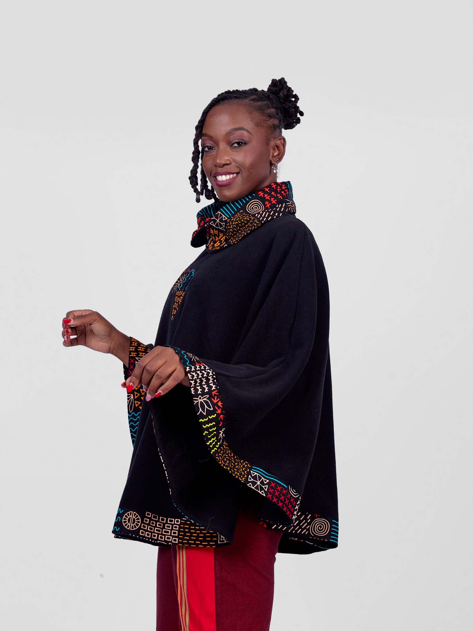 Stay stylish and warm with our beautifully crafted ponchos, made from soft fleece material and accented with a touch of vibrant African Kitenge fabric. Designed for comfort and elegance, these cozy ponchos are perfect for any occasion.