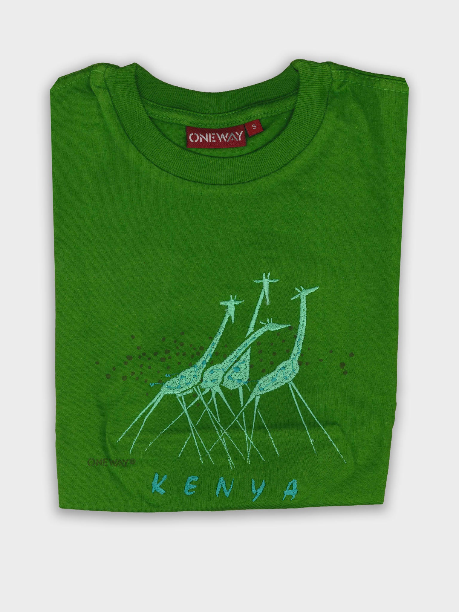 Made by Oneway Kenya, the Running Giraffes Kids T-Shirt stands out with its unique and eye-catching artwork. Designed specifically for children, it showcases a playful depiction of giraffes in motion that is sure to ignite the imagination. Let your child express their love for nature with a shirt that tells a story.