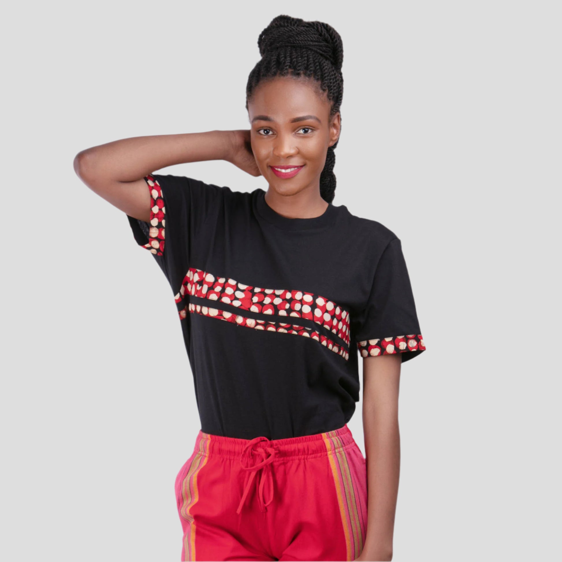 *Note: Every Kitenge has unique color variations and patterns. This ensures that you will receive a unique piece of fashion. This also means that the Kitenge fabric used might vary from what is displayed on this page. If you wish to ensure to receive a color of your liking, please get in touch with us via mail and we will send you some pictures of the Kitenge designs that we have available. Otherwise, we will also happily choose a nice design for you.